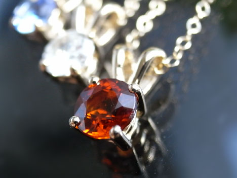 一般的にガーネットと言えば茶をかんだ色合いのパイロープ、アルマンディン、ロードライトが知られていますが、こちらはそれとは別の、鮮やかな色合いが特徴のスペサルティン(スペサタイト)という種類です。スペサルティンの中でもオレンジ色のものをマンダリン・ガーネットとも呼んでいます。