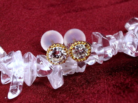 一粒あたり0.2ct前後ダイヤモンドとボリュームがあり、無色SI-I/GOODクラスですが輝きで内包物はあまり目立たないと思います。