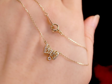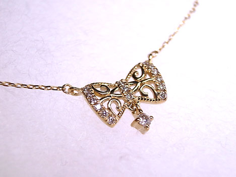 ダイヤモンド0.08ctリボンペンダントK10YG |