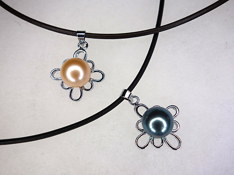 タイより直輸入の淡水真珠のシルバーペンダントに日本製レザーチョーカーをセットにしました。シルバーペンダント枠はロジウム加工がしてありますのでお手入れが簡単です。枠の上に真珠がセットされていますので真珠が直接お肌に触れることがなく、汗をかきやすい夏場も気兼ねなくお使いになれます。