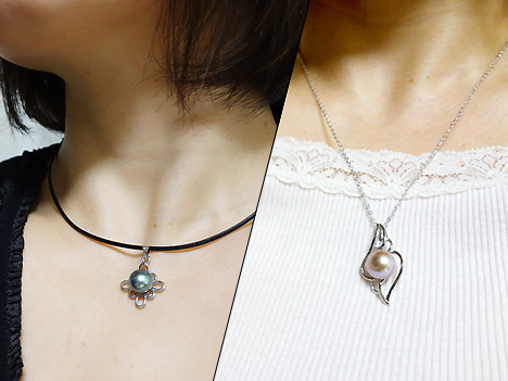 グレー淡水真珠シルバーペンダント(黒レザーチョーカー) |