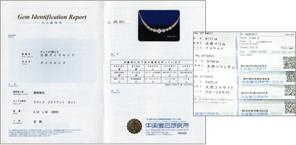 当店では、全ての商品(ケア用品等除く)に保証書を発行しておりますが、別途、鑑別書・鑑定書をご希望のお客さまには、鑑別機関所定料金+手数料1,000円にて鑑別機関より発行させていただいております。依頼先は、国内最大規模の鑑別機関である中央宝石研究所またはジェム・グレーディング・システム・ジャパンになります。